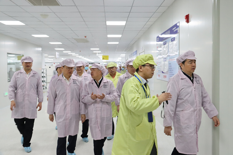 在倪斌先生的帶領及介紹下,馬曉暉、王綱、孫賢龍、楊建新、夏文星等市四套班子的領導們對公司車規級產線有了一定的了解。