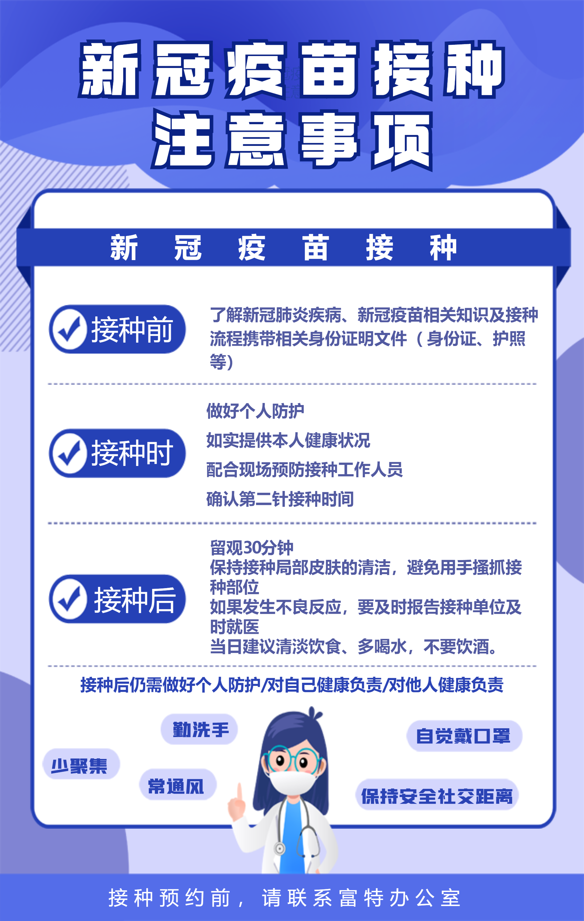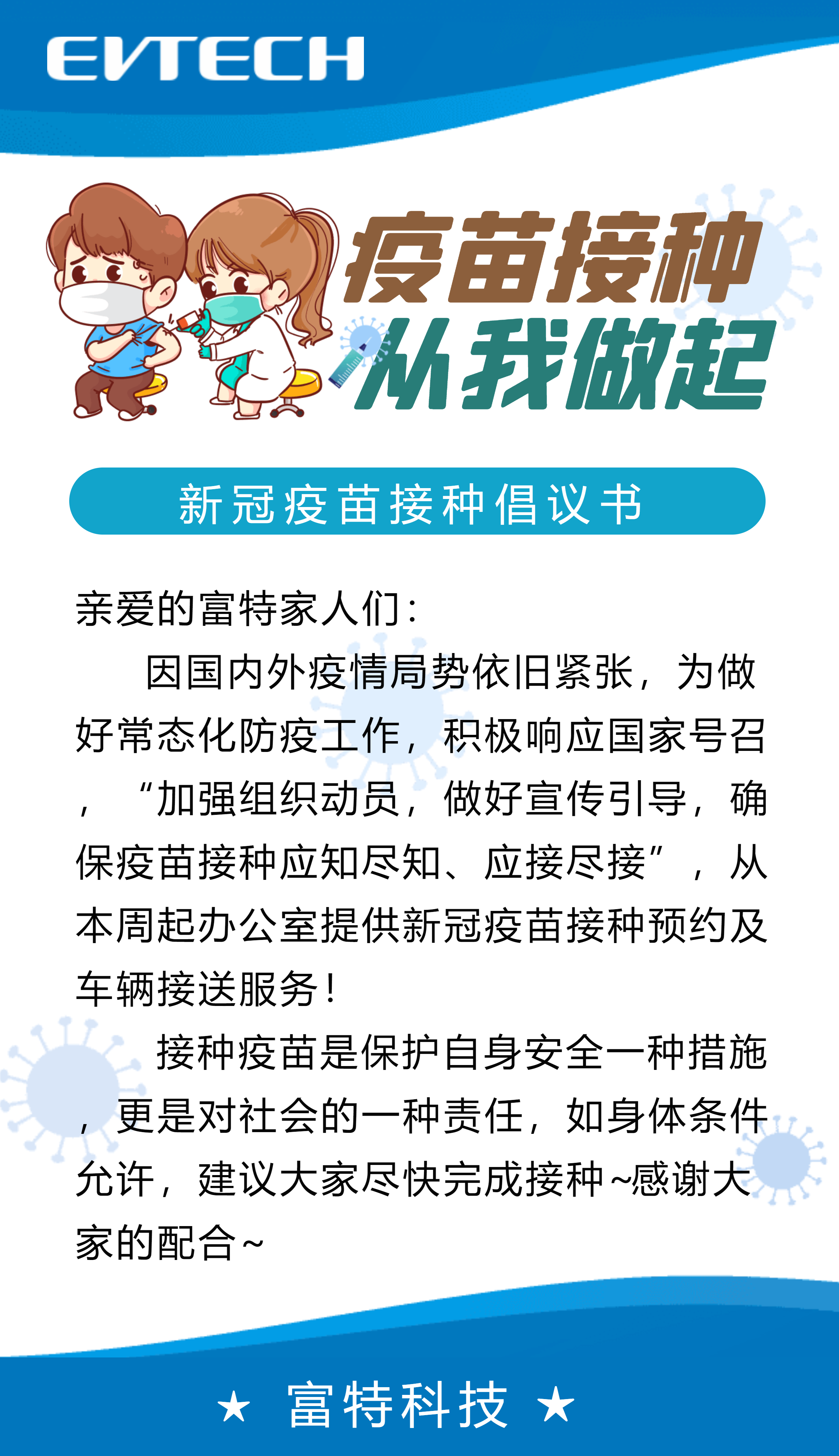 疫苗的接種預(yù)約及接送服務(wù),通過各部門內(nèi)勤伙伴統(tǒng)一提報給辦公室-徐雯即可,她將會大家做好相關(guān)事宜的安排!